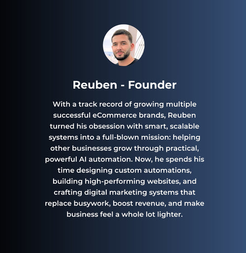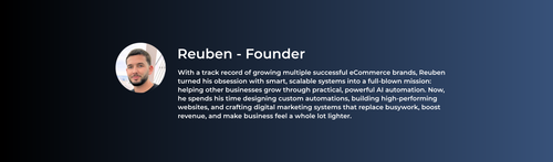 Investing in weekly consulting sessions with Reuben has been one of the best decisions we’ve made for our business. His knowledge of Meta ads and email marketing is second to none, and the insights he’s shared have already made a huge impact. Every session is packed with actionable strategies, and we’re seeing the results firsthand. Both my business partner and I feel so much more confident running our ads. We look forward to learning even more from him in the future